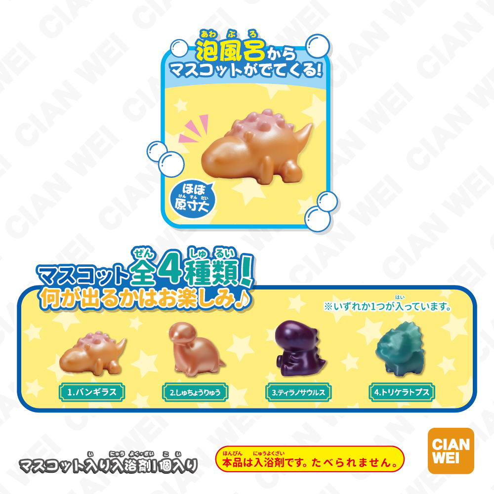 每顆泡澡球都含1個角色小公仔,共4種,採隨機出貨,